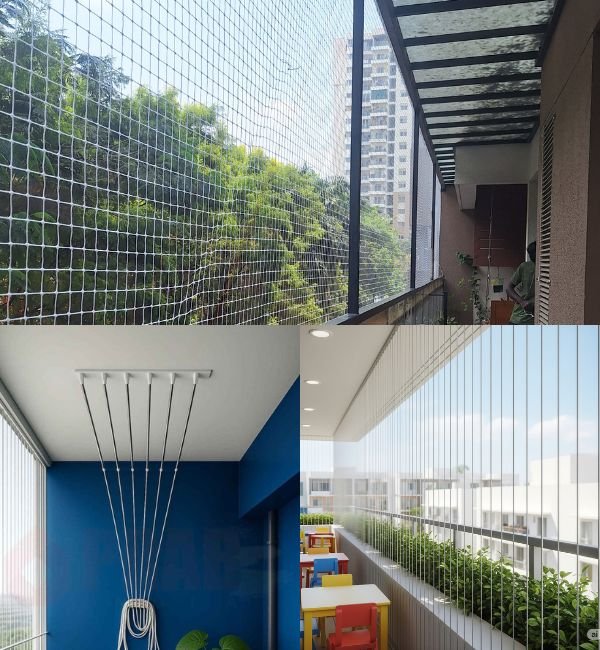 Balcony safety nets provide protection from falls and prevent birds from entering, ensuring safety for children, pets, and family members.